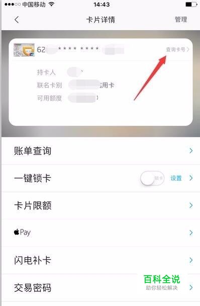 进入卡片详情页面后,点击“查询卡号”;
