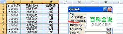 打开高级筛选窗口,可以勾选不同条件。 首先在原有区域显示筛选结果:白话意思就是在表格的基础上操作后,多余重复项目会自动删除,余下不重复的。 勾选选中不重复的记录,点击确定执行。 在原有表格基础上删除了重复项目。