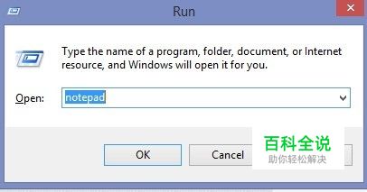 首先让我们打开一个新的记事本, 同时按住电脑的windows(窗口)键和R键,然后在输入框中输入notepad, 回车。就可以弹出一个记事本的新窗口。这里可能很多人都会觉得每次都要输一个"notepad"感觉很麻烦,还不如右击来新建,这里不用担心,我们只需要在第一次输入"notepad"以后windows都会记住你的选择。并且保存下来。