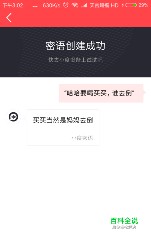 设置完成后在我们与小度对话的时候就会按照我们设定的对话内容来实现互动了。