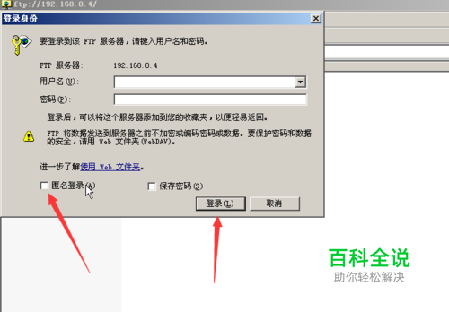 可以看到如下图要输入用户名和密码才能登录,这里没有用户的话可以选择匿名登录在单击登录。