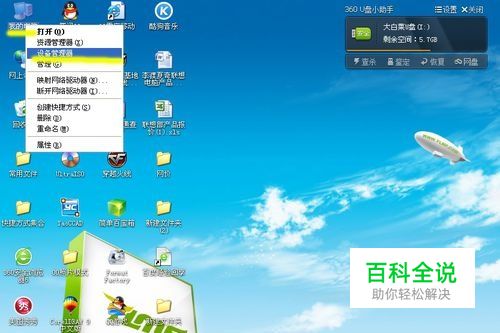 首先,我们在桌面找到“我的电脑”或“计算机”,鼠标右击图标,在弹出的下框中选择“设备管理器”