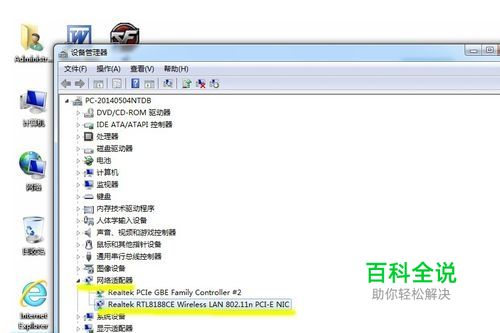 点击“设备管理器”后,在弹出的列表中,找到你的无线网卡程序,如图所示