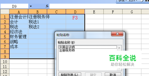 黏贴名称中的全部,直接使用F3,我们也不需要使用插入,名称,黏贴。