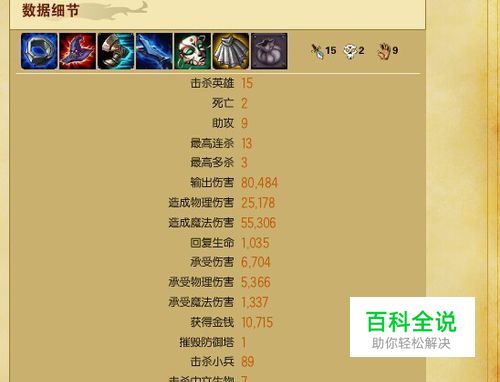 我们点击其中一个英雄头像即可查看当局的具体信息。其中可以看到装备、人头数等等。如下图