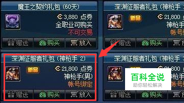 接着,在“礼包”中,我们可以清晰地发现有“深渊征服者礼包”,此时我们在这个礼包框中,选择“购买”。