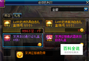 最后,我们在迷你巴利尔中有一个礼包兑换的地方,此时我们可以使用我们的勋章进行兑换。