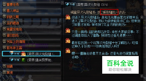 [异界]异次元裂缝(3/4)任务怎么做? 根据任务要求,玩家需要找【了解裂缝的人】谈谈。
