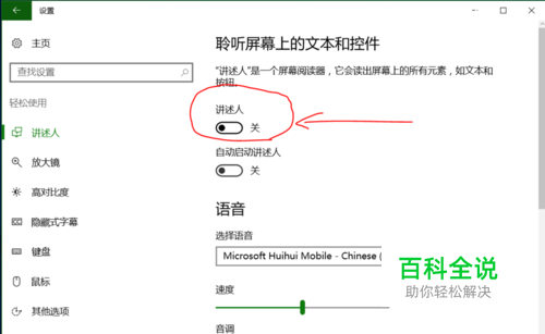 进入 讲述人选项,打开讲述人 开关