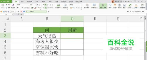 打开WPS表格,输入我们需要判断的内容;