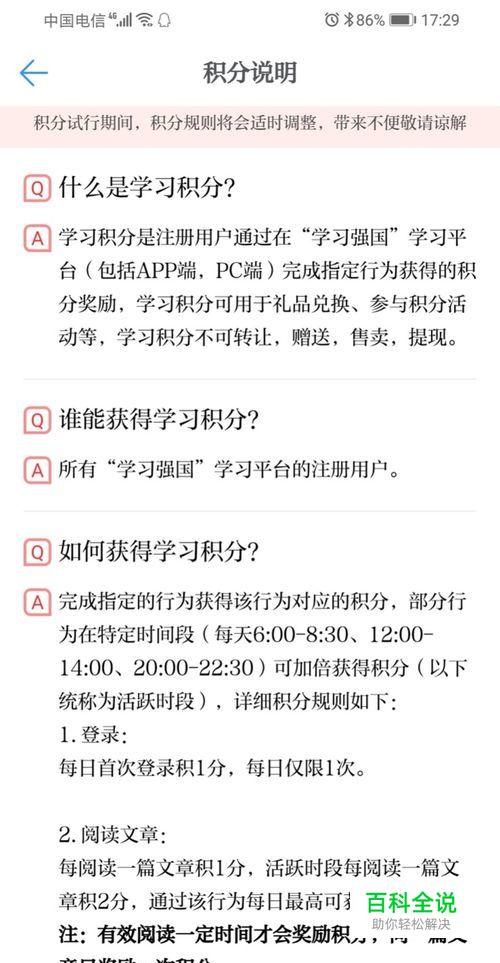 「学习积分」在手机APP端和PC端(电脑网页版)是注册用户通过平台做任务来获得,APP端每天最高可以获取的积分,一定要先熟悉软件的操作,记住各个功能都在那个位置。「特定时间段」内做任务是可以获取双倍积分,即「活跃时段」,每天的「6:00–8:30」、「12:00--14:00」、「20:00—22:30」三个时段,但是获取积分的上限不变。