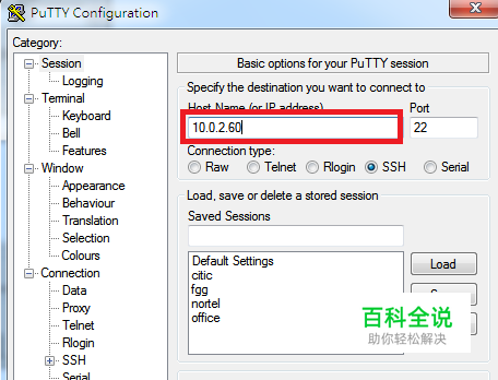 双击putty.exe 输入要登录的服务器的IP或者主机名。然后单击"Open"。