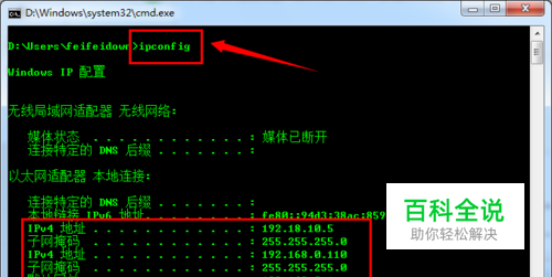 输入命令“IPCONFIG”就可以查看到所有本机的IP地址信息啦。 至此,将电脑放置于不同的网络环境下都可以实现正常上网操作。