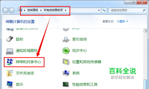 打开“控制面板”,点击“网络和共享中心”进入。