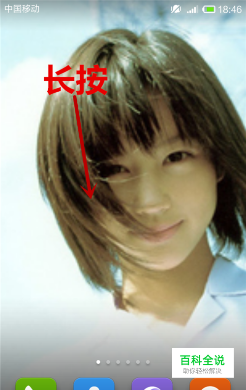 首先,找到手机的一个空白页面,用于摆置日历,长按桌面,会弹出选框。
