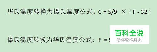 华氏温度与摄氏温度之间的转换公式,如下图所示。