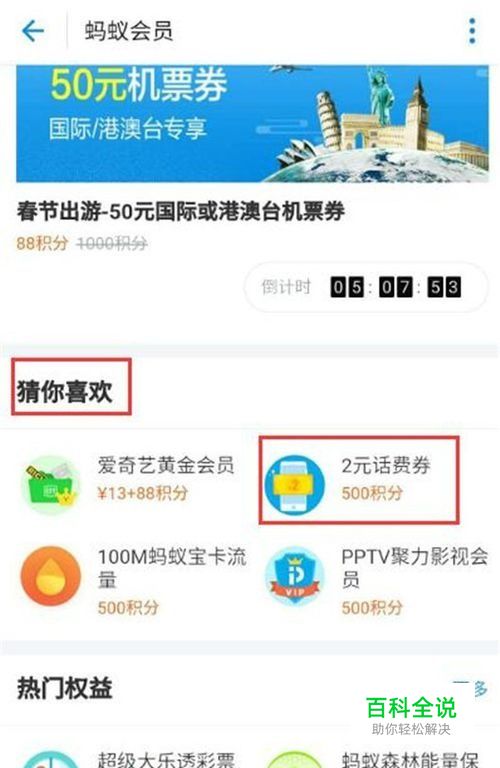 进入蚂蚁会员后,一直往下拉,拉到猜你喜欢栏目,点击“2元话费劵”,500积分可以兑换。