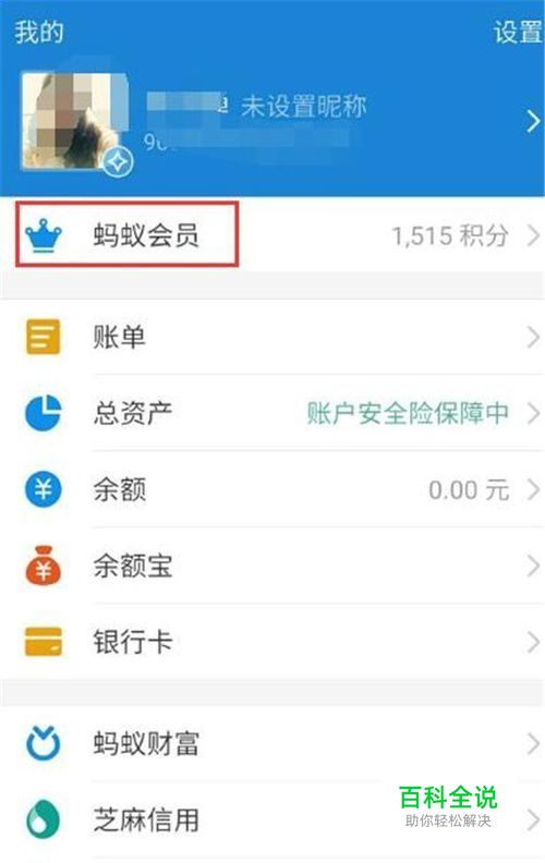 打开支付宝,点击“我的”,再点击上方的“蚂蚁会员”