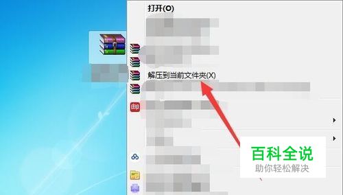电脑中必须安装有主程序,然后我们在下载该文件到电脑桌面,通过在下载好的压缩文件上鼠标右击并选择解压到当前文件夹。