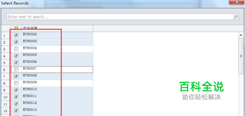2)在弹出的“Select Record”对话框中,筛选要打印的数据库记录。以勾选的方式进行,在下方可预览所选的记录。