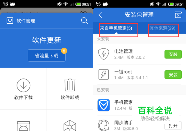智能手机中总会安装一些应用软件,下载这些软件的安装包藏匿在手机总很占手机内存,那么如何有效方便快速的整理手机中的安装包呢? 打开软件管理界面,点击安装包管理,安装包来源主要分【来自手机管家】和【其他来源】两大类。来自手机管家就是手机管家中自带的应用,比如电池管理、应用宝等。其他来源就是通过第三方手机助手下载的安装包或是在浏览器中下载的安装包。如下图: 对于安装包管理,主要就是安装包安装和删除多余安装包,下面说一下安装安装包,以其他来源中刀塔传奇为例。如下图: 安装相对较为简单。下面说一下删除安装包。我们还是以其他来源为例。进入删除安装包界面,我们可以看到所有安装包,最重点的是,每一款安装包都有自己的说明。我们可以根据说明去选择性删除安装包。如下图: 安装包管理不单单是方便删除或安装的功能,更是通过安装包管理获得更大的内存空间,释放更多的内存。也是手机优化的一部分。如果童鞋们手机中的安装包积压过多,建议尝试清除安装包。
