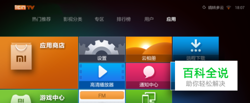 将盒子与电视连接,使用盒子的遥控器选中“应用”,然后打开“Nibiru游戏城”出现下图效果;