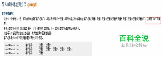 建立邮件地址列表: 以上诸项均是变量,由于每位员工姓名对应唯一的邮箱账号,因此我们就可以据此建立一个邮件地址列表,这个地址列表可用excel表建立,再生成txt格式,也可在“记事本”中逐项输入,格式要求如下所示: 注意:a. 在excel表格中建立的文件直接复制到txt文件中便符合规则了; b. 邮件地址与工资表逐一对应。