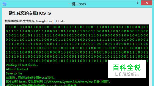 第三步: 点击【一键Hosts】,在出现的界面中点击【start】按钮,开始生成专属hosts文件,生成完成后会自动弹出保存对话框