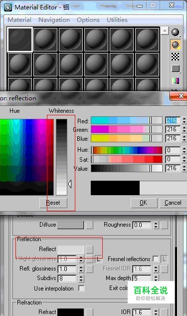 铝的表面是粗糙的,这里我们要把他的反射模糊调大一些