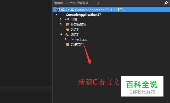 首先打开Visual Studio软件,新建一个Win32应用程序,并且在项目下新建C语言文件,如下图所示
