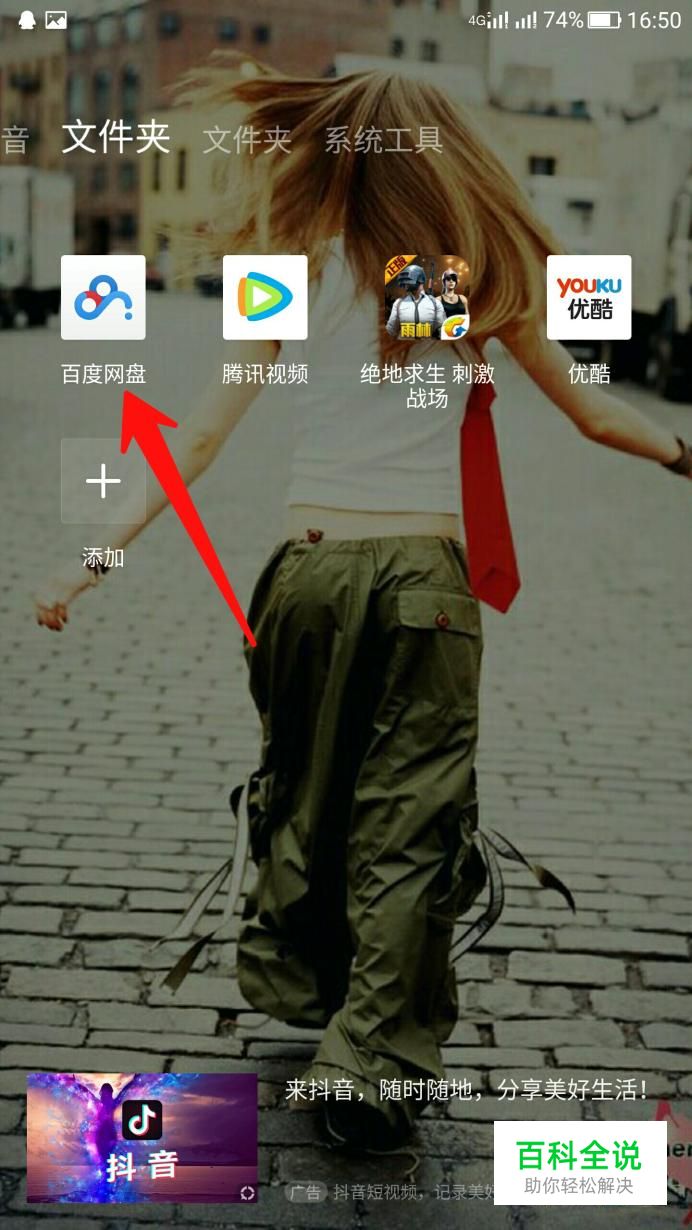 首先找到手机上的百度云盘,点击进入。