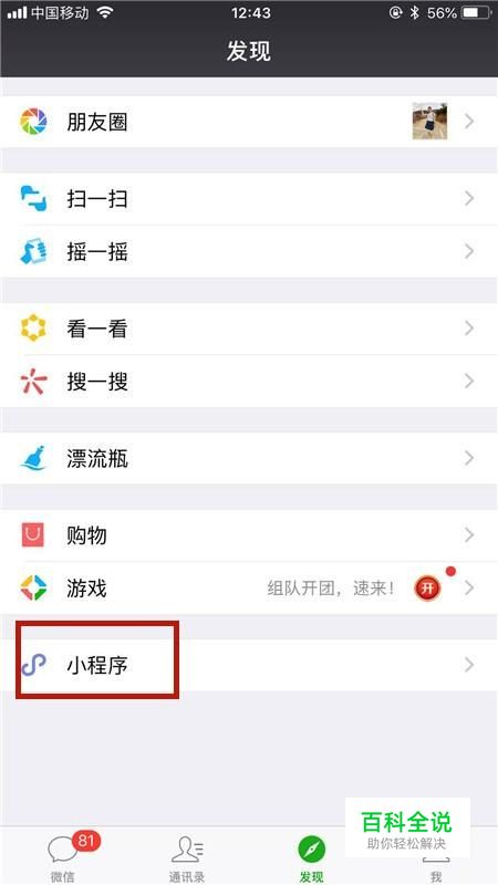 首先点击微信中的小程序,如下图所示。