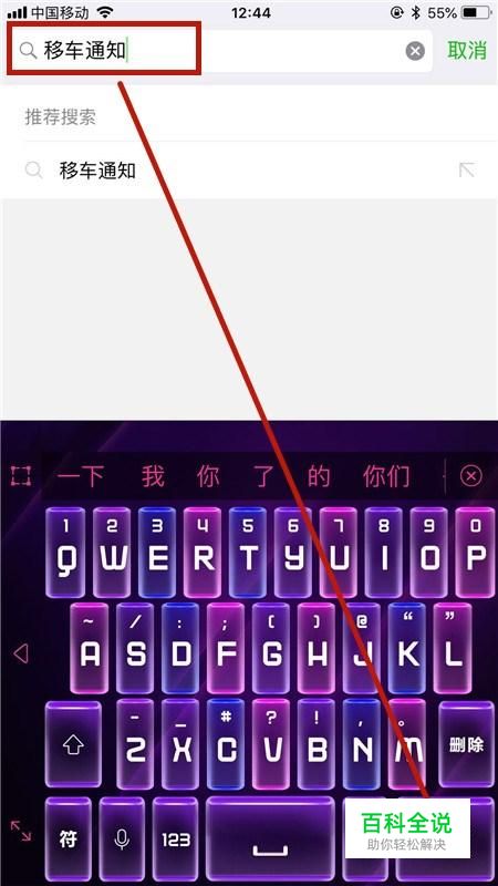然后输入移车通知并点击搜索,如下图所示。