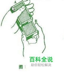 左手拇指和其他四指握住一副牌,右手拇指和中指、无名指捏住下面大约半副牌的两侧抽出来(如图1)。
