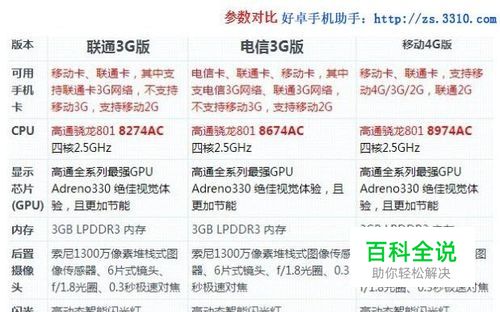 三种版本的差别归根到底是CPU的细微差别(CPU支持网络制式的差别,其他完全一致),除此之外三种版本完全相同。