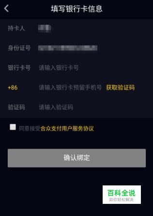 填写银行卡信息,然后点击“确认绑定”即可完成实名认证,如图所示。