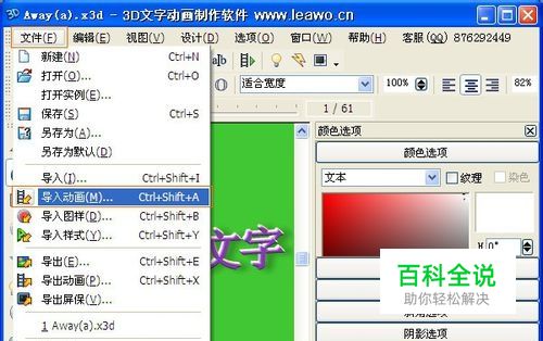 打开软件,进入如下图所示界面,新手开始不用自己去瞎捣腾,直接引用软件自带有的动画样式。点击菜单“文件”-“导入动画...”。