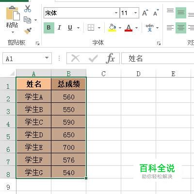 以下图中的表格数据为例演示操作方法。 先把表格选中。