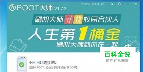2、下载并安装ROOT工具,此工具为独立包,不会装驱动的。(打开USB调试,可以连接小米助手,才可以继续下面的步骤)