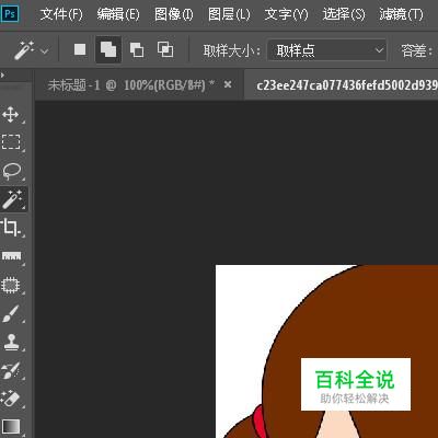 再看“连续”这里;勾选与不勾选“连续”,我们实操一下就明白其作用。比如,不勾选“连续”,鼠标点击一下头发这里。可以看到,头发全部图像都选中了。