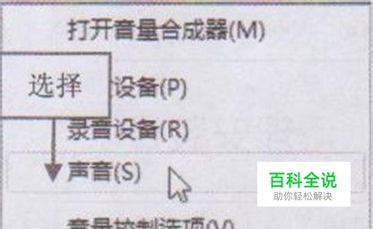 在系统托盘处右击“小喇叭”图标,在弹 出的菜单中选择“声音”选项