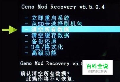 用音量键选择【清空所有数据】然后再选择【是的-清空所有数据】然后按电源键确认