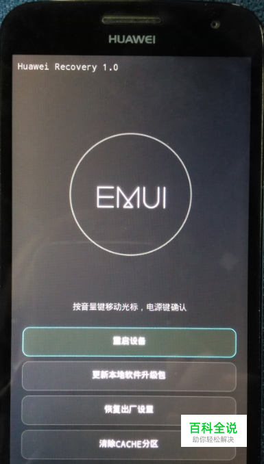 解决办法:用户通过音量上和音量下键选择reboot system now或者“重启设备”,再按开机键,手机会重启,恢复正常状态。
