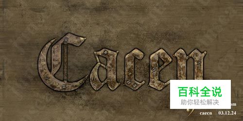 13.好了,一排铁锈的文字就完成了,对颜色的不满可以通过调节‘色彩平衡’,或‘色相/饱和度’来修改,并可在最底层的文字图象上使用一次烙黄的命令,可将细节设置为10,平滑度设置为0,这样处理后的文字看起来的金属感就更强了。如果改变各图层的混合模式的,并配以合适的底纹,那将能得到各种不同的效果。(图14)。