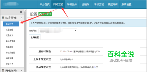 点击网吧营销,选择基础设置