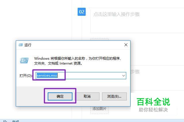 弹出的界面,我们输入services.msc,并点击确定;