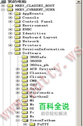 找到HKEY_CURRENT_USER\Software\SimonTatham(Puttyb配置信息的注册表目录)