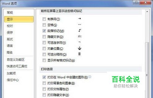 第2步,打开“Word选项”对话框,切换到“显示”选项卡。在“打印选项”区域选中“打印前更新域”复选框,并单击“确定”按钮即可,如图2011121106所示。 图2011121106 选中“打印前更新域”复选框