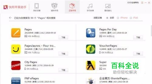 利用快用苹果助手怎么免费下载pages