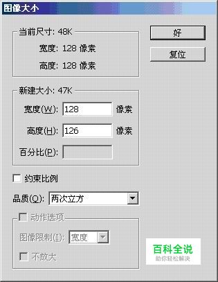 在 ImageReady 中打开一张您需要修改的 GIF 图片,然后点击图像菜单-选择图像大小: 然后就可以修改您想要的大小了, E808 的满屏尺寸是 128*126 ,那我们就在高度栏中把 128 改为 126 象素: 注意约束比例前把勾去掉。 然后点击“好”,就 OK 了。 看看效果,是不是很简单呢?:)